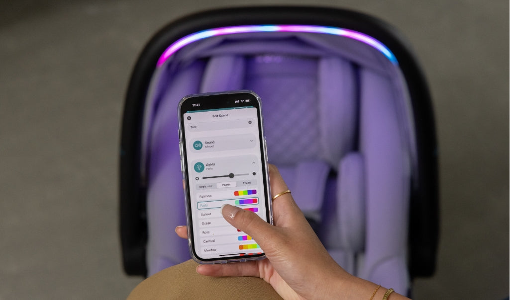 Accessible through the Evenflo® app, SensorySoothe™ technology calms and mesmerizes your little one at a moment’s notice. Right from your phone, you can cue a captivating light show, create a calming space with nature sounds or play a favorite lullaby.