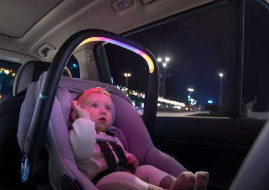 Cue a mesmerizing light show with music or sounds via the Evenflo app, on command or using controls on the car seat. Learn more.