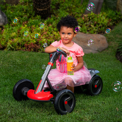 Introducing the first foldable electric ride-on, the FLEX Kart from Rollplay®! The FLEX Kart brings fun to your little one’s day, with a 6V battery and charger that power cruising up to 2 mph for a thrilling ride — at a speed you can feel comfortable with. The sleek, high-quality go-kart design will have your child riding in style. With the touch of the button, you can effortlessly fold to store or expand to play. Whether headed to the park or just riding around your neighborhood, take this lightweight, motorized ride-on anywhere and then fold it up to store out of the way. The FLEX Kart measures 30.7 in. x 21.3 in. x 19.1 in. fully open and 30.7 in. x 10.6 in. x 9.25 in. fully folded. Suitable for children 2 years of age and older, weighing up to 55 lb. Backed by a limited 1-year warranty on the vehicle, a limited 6-month warranty on the battery, and the support of a dedicated U.S. Customer Service team.