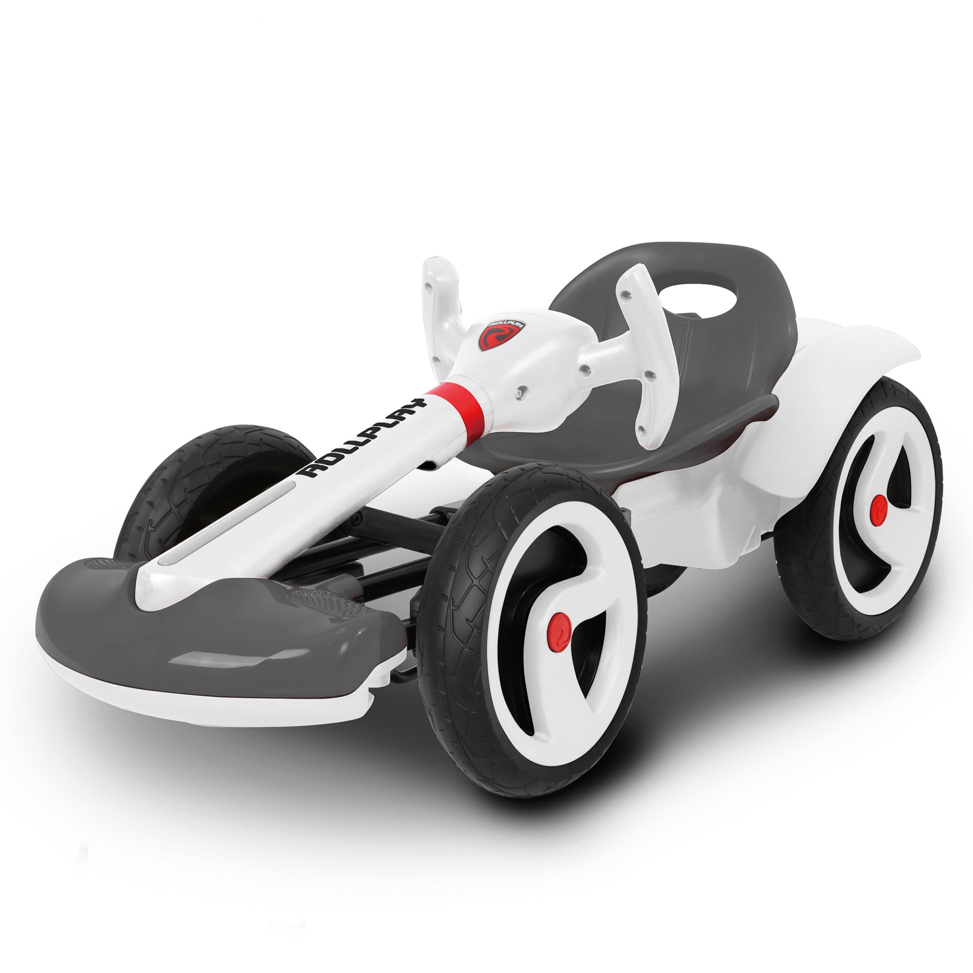 Introducing the first foldable electric ride-on, the FLEX Kart from Rollplay®! The FLEX Kart brings fun to your little one’s day, with a 6V battery and charger that power cruising up to 2 mph for a thrilling ride — at a speed you can feel comfortable with. The sleek, high-quality go-kart design will have your child riding in style. With the touch of the button, you can effortlessly fold to store or expand to play. Whether headed to the park or just riding around your neighborhood, take this lightweight, motorized ride-on anywhere and then fold it up to store out of the way. The FLEX Kart measures 30.7 in. x 21.3 in. x 19.1 in. fully open and 30.7 in. x 10.6 in. x 9.25 in. fully folded. Suitable for children 2 years of age and older, weighing up to 55 lb. Backed by a limited 1-year warranty on the vehicle, a limited 6-month warranty on the battery, and the support of a dedicated U.S. Customer Service team.
