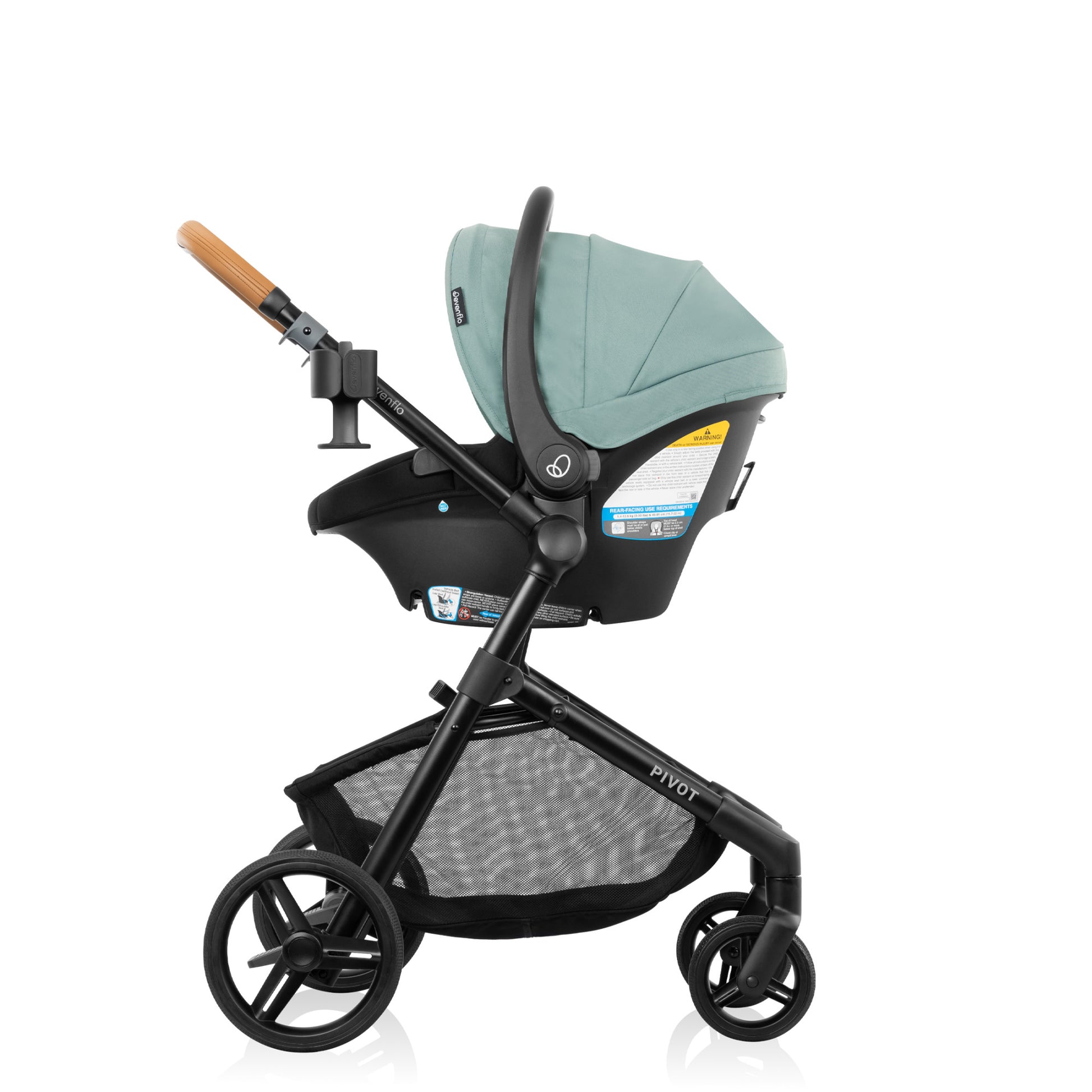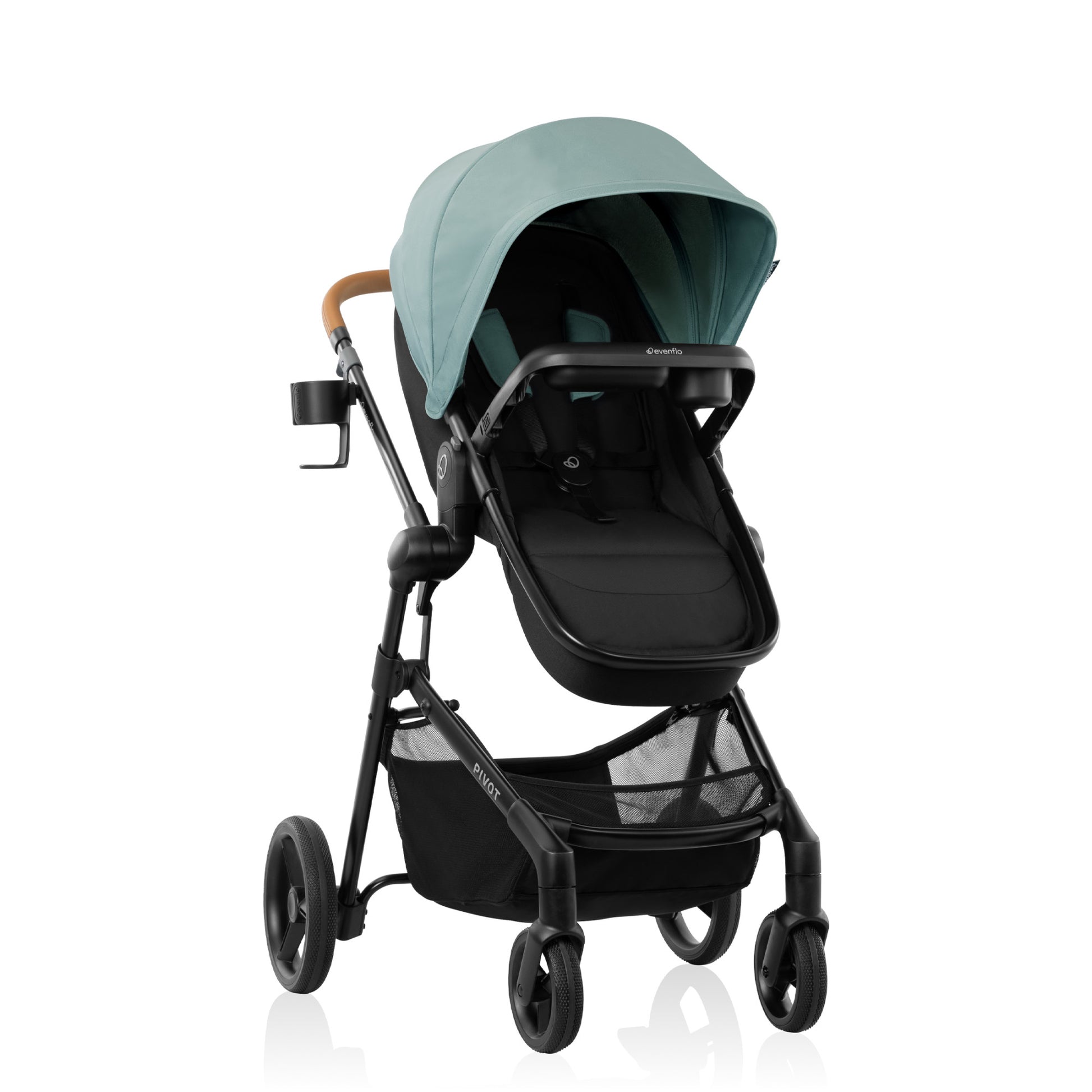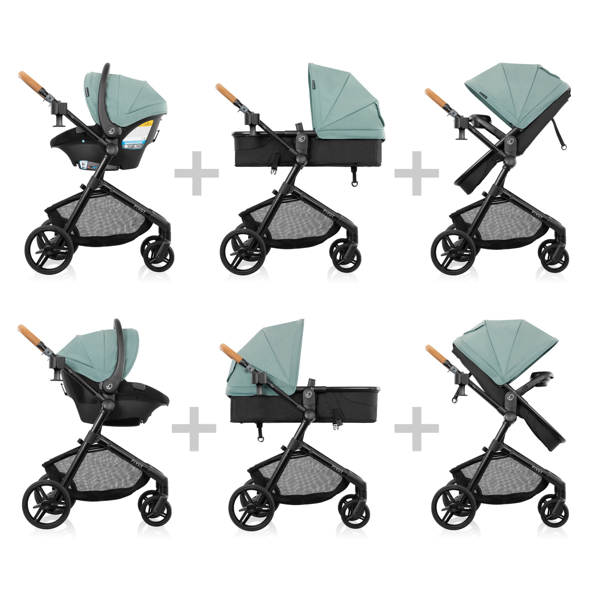 America’s #1 Selling Travel System* just got an upgrade! Introducing the Evenflo® Pivot® NXT Travel System. 6 Modes. Upgraded wheels. One trusted travel system.This refreshed, modular design features improved wheels for smooth rides and 6 modes of use from lay-flat pramette for newborns to upright seating for toddlers. The included Revolve180™ LiteMax™ NXT Infant Car Seat features one-hand, 180° car seat rotation for easy in & out of the car and transitions seamlessly to the stroller frame. Premium touches include leatherette handle, parent cupholder, supersized storage basket, and UPF 50+ canopy. GREENGUARD Gold Certified.