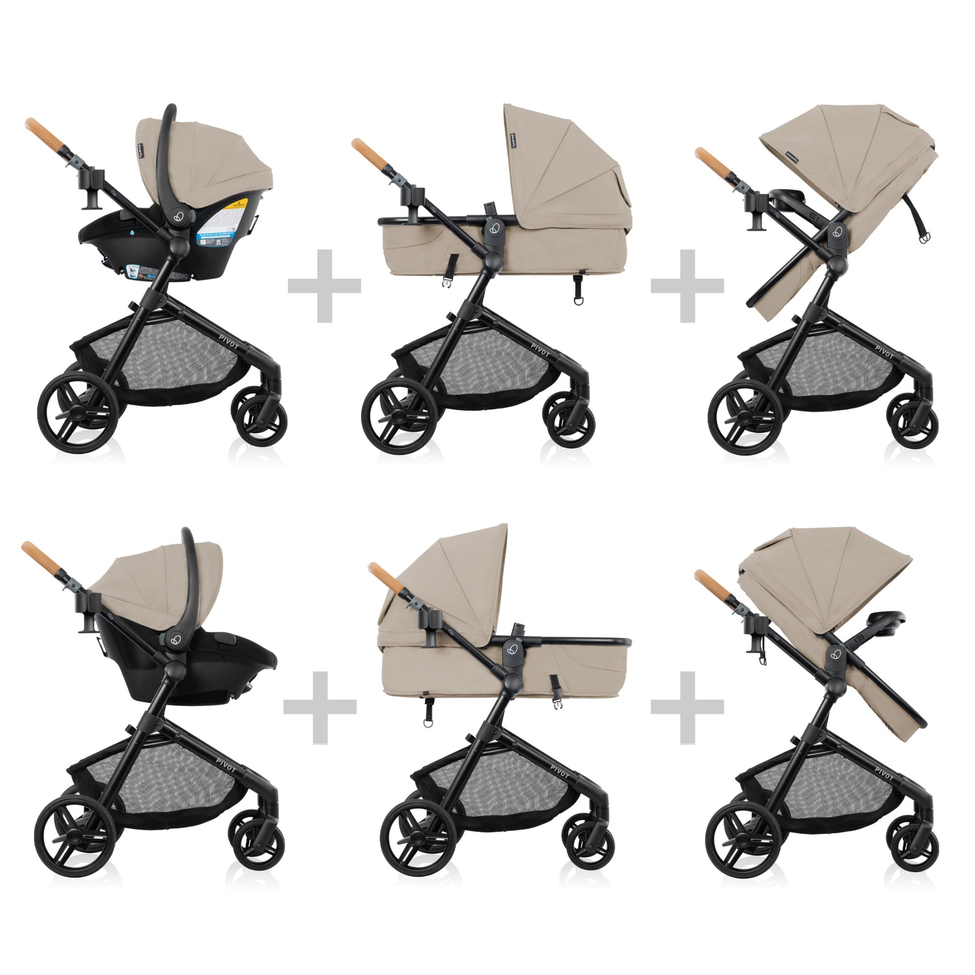 America’s #1 Selling Travel System* just got an upgrade! Introducing the Evenflo® Pivot® NXT Travel System. 6 Modes. Upgraded wheels. One trusted travel system.This refreshed design features a modular, lightweight design and improved wheels for an exceptionally smooth ride that grows with your family. The versatile modular design offers 6 modes of use, from lay-flat pramette for newborns to upright seating for toddlers. The included LiteMax™ NXT Infant Car Seat is lightweight (8.6 lb) and easy to install. Premium touches include leatherette handle, parent cupholder, supersized storage basket, and UPF 50+ canopy. GREENGUARD Gold Certified.