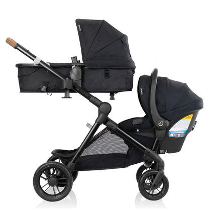 The Evenflo® Pivot® Xpand™ NXT Travel System is the next evolution of the Pivot® Xpand™ Travel System — the #1 Single to Double Travel System in the US from 2021 – 2024*. It converts from a single to a double stroller with no tools or extra parts required. With up to 23 configurations, it adapts to your growing family's needs. The included LiteMax™ NXT Infant Car Seat is lightweight and easy to install, while the toddler seat converts to a lay-flat pramette. Large cruiser tires, a height-adjustable UPF 50+ canopy, and a storage basket for up to 10 lb of essentials make every outing smoother. Designed for comfort, versatility, and safety. GREENGUARD® Gold Certified.Compatible with the Stroller Rider Board, Market Basket, Second Toddler Seat and an additional Infant Car Seat (LiteMax™, LiteMax™ NXT, Revolve180™ LiteMax™ NXT) each sold separately.