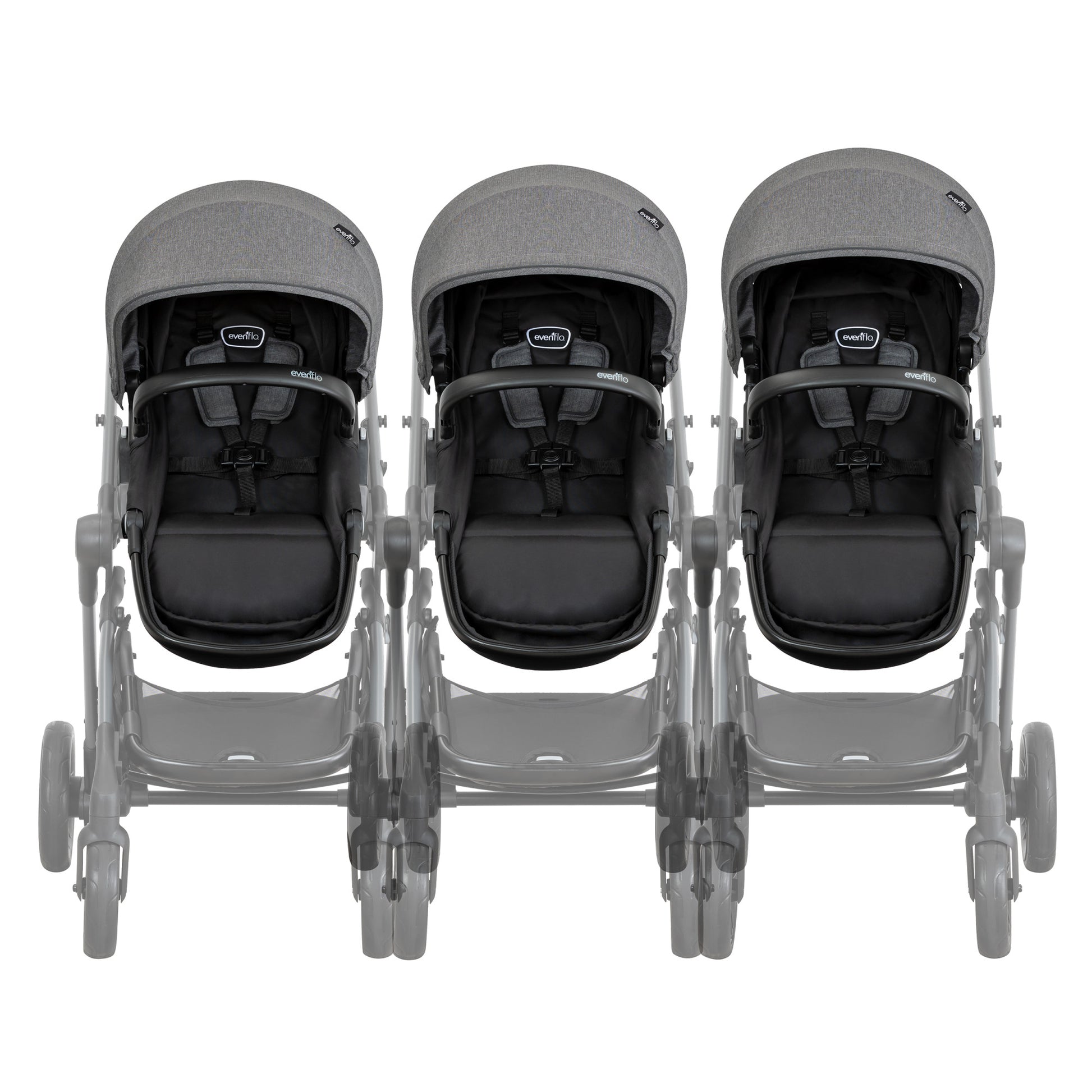 The Evenflo® Pivot Xpand™ Second Seat is the perfect addition to your growing family! The seat easily and quickly attaches with no tools or adapters. On your stroller, simply slide the main seat attachment up to create extra space and flip out the front seat attachment to click your second seat into place. Two children can now ride at once. For babies, the second seat effortlessly transforms to carriage mode, so your baby can lie flat and stretch out. The seat easily clicks onto the attachments in both parent- and forward-facing modes, giving you multiple riding configurations. The canopy can be adjusted to one of three heights as your child grows.Features