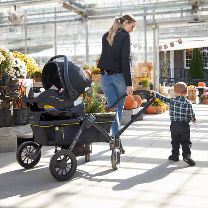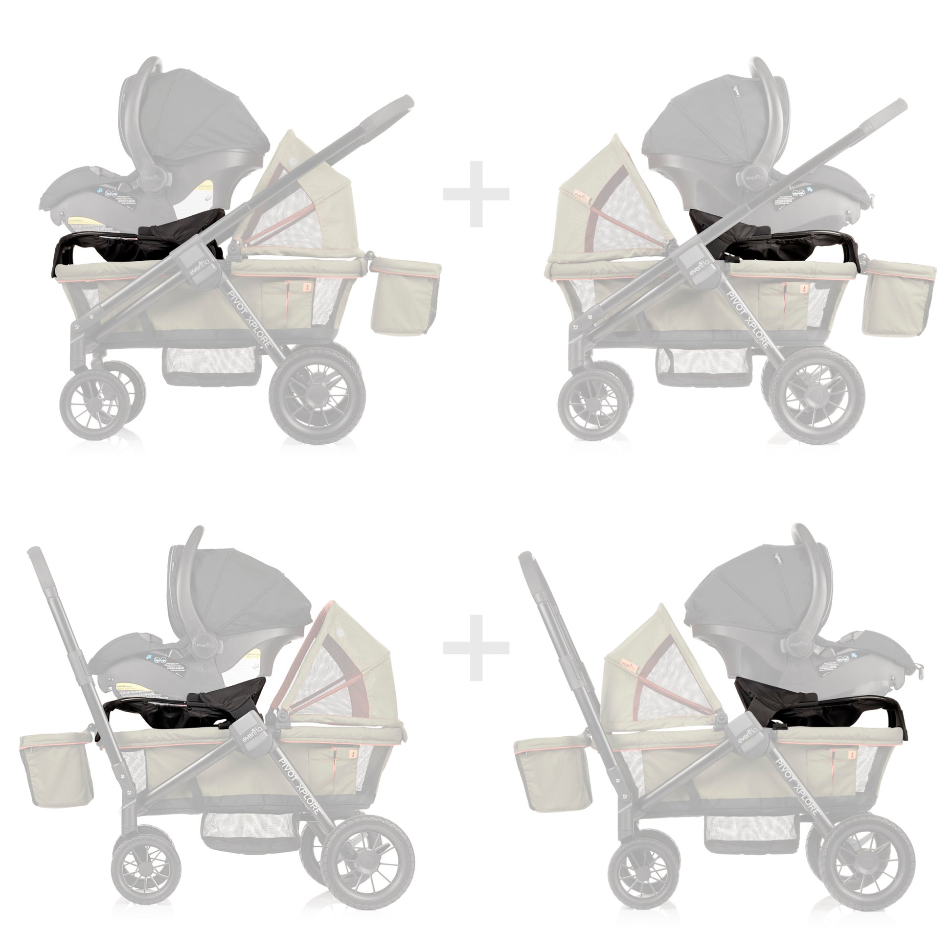 This Infant Car Seat Adapter is reversible to be forward- or parent-facing. Whether you want to push or pull your Pivot Xplore, just flip the wagon’s handle without even removing the car seat. Elevated placement of the car seat with adapter allows space for a second child rider to sit comfortably in the wagon along with your child care necessities.Features