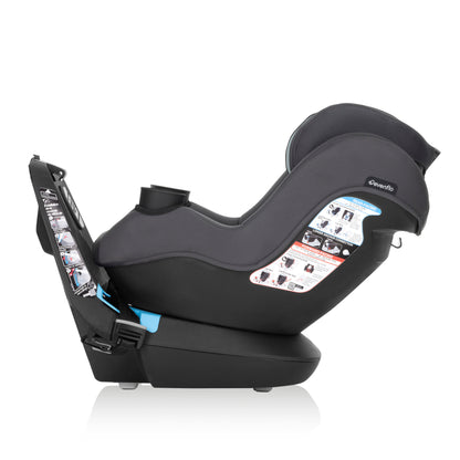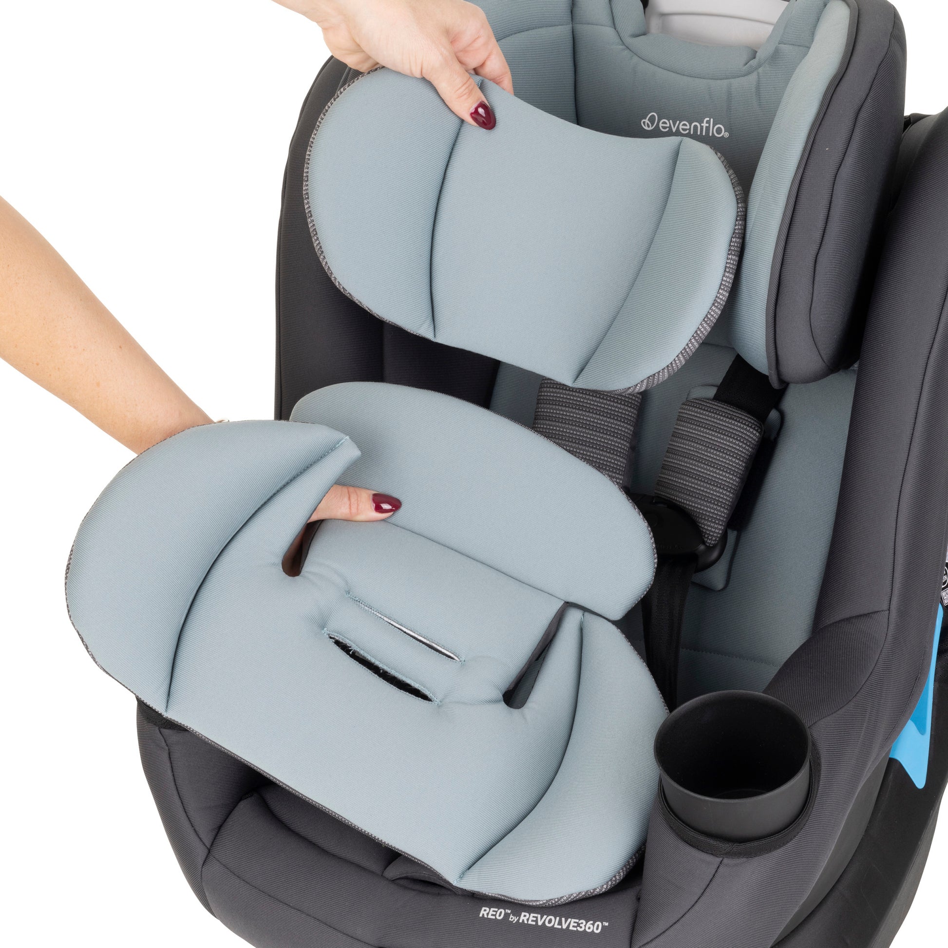 Not your first rodeo? About to be a grandparent? Need a second seat? Whatever brings your search for a safe, easy-to-use car seat to Evenflo® ’s REO™ by Revolve360™ Rotational Convertible Car Seat, you’ve come to the right place! For practicality and real ease, there’s nothing better than one-hand, 360° rotation — no kidding. This shortens your reach, helps to save your back and simplifies getting your child in and out of the car. Secure, one-and-done LATCH installation with hassle-free hooks makes things easy from the outset. Then, when your little one is ready for forward-facing, just rotate — no uninstalling. An excellent and compact choice for grandparents, caregivers and secondary vehicles. REO provides rear-facing mode for children 4 lb to 40 lb with optimal infant fit, and forward-facing mode from 30 lb to 40 lb. Includes 2 removable, dishwasher-safe cup holders.Features