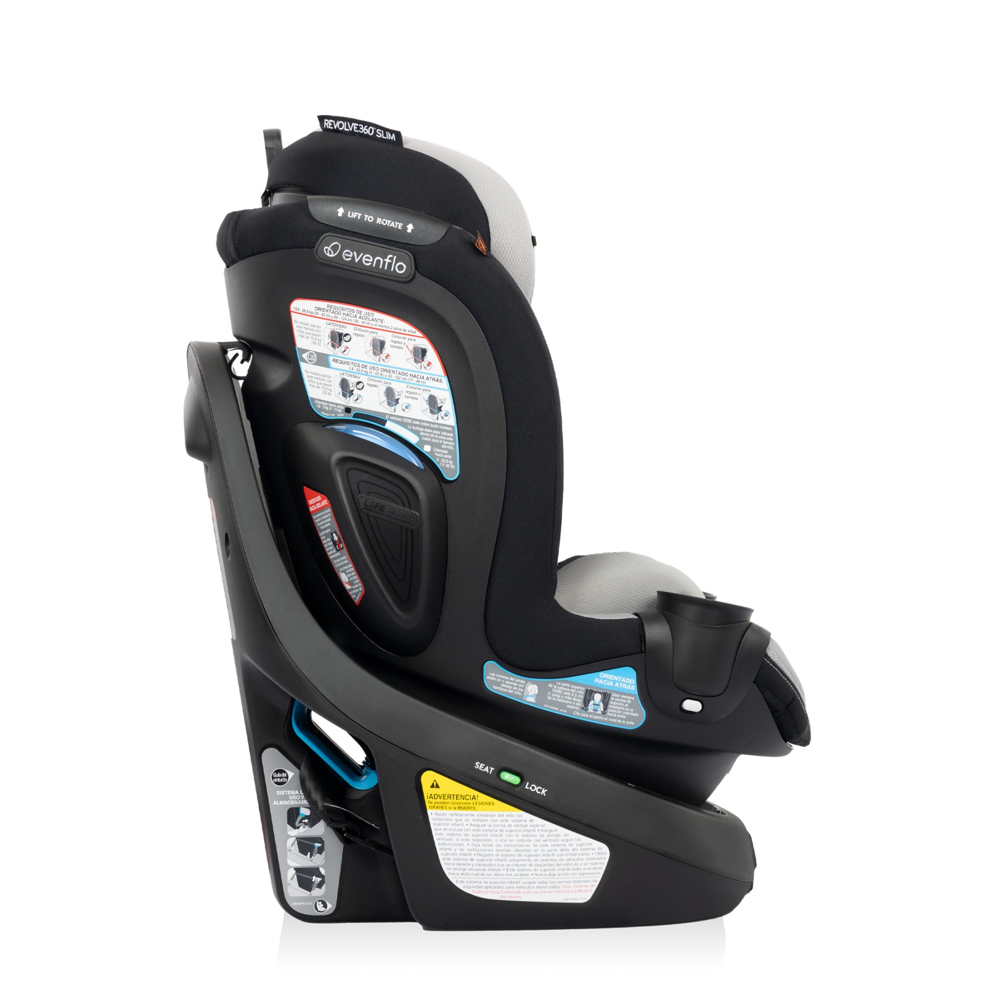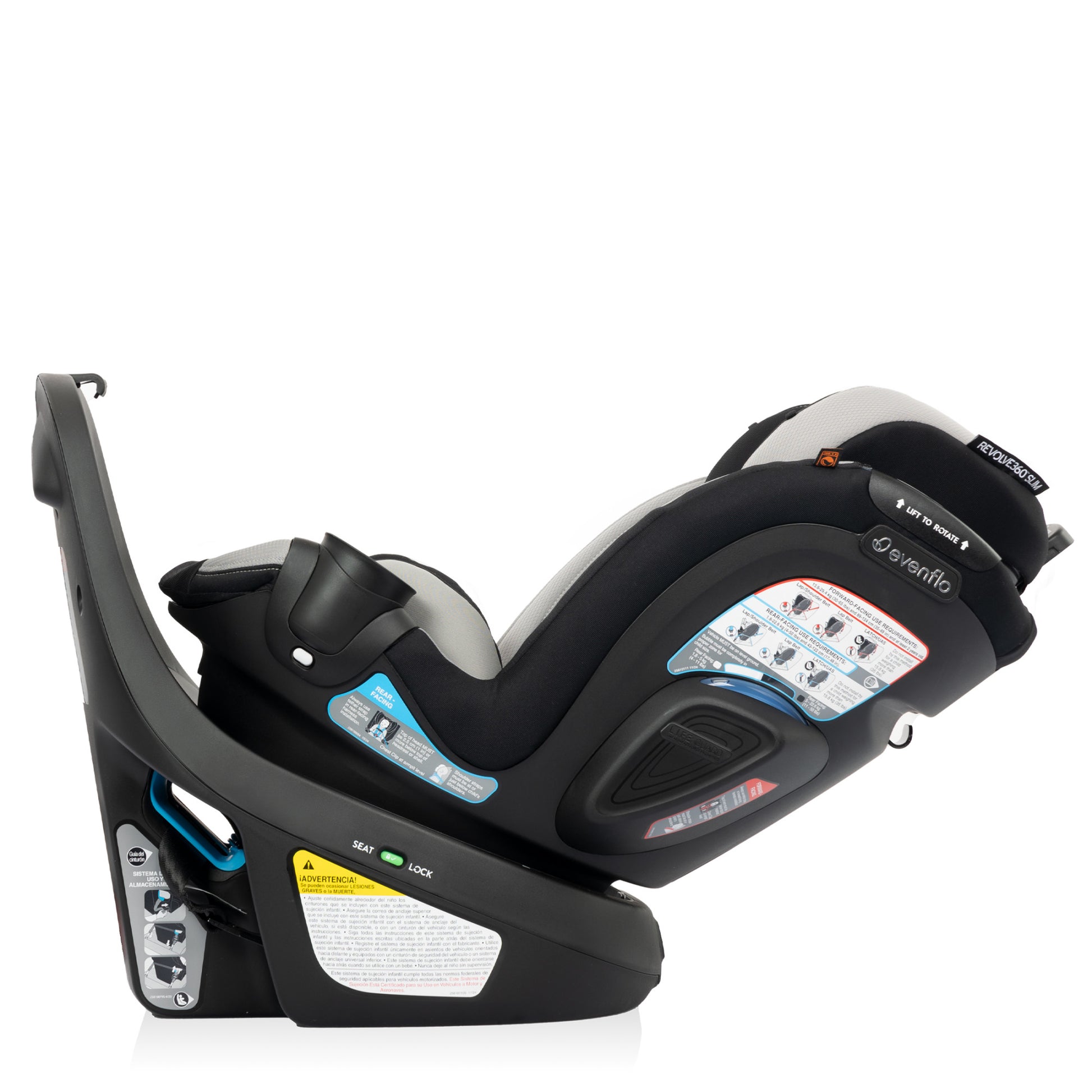 A spin-off of the Revolve360, America’s bestselling rotational car seat, the Revolve360 Slim offers one-hand, 360° rotation in all modes, making it easier to get your child in and out of the car. But a 360° rotating car seat is just the beginning. The Revolve360 Slim offers two modes: rear-facing (4 lb to 50 lb, for a child measuring from 17 in. to 48 in) and forward-facing (30 lb to 65 lb, for a child measuring 35 in. to 49 in.). For peace of mind all the way around, this slim fit car seat offers the extended security of rear-facing all the way up to 50 lb. Child safety experts say the longer your child remains rear-facing, the better. Convenience comes full circle in a rotating car seat you can install just once for rear-facing and forward-facing — no need to uninstall your car seat in order to make the switch.Child Fit - Rear Facing