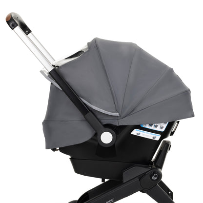 Our premium, 3-in-1 Evenflo® Shyft™ DualRide™ All-Weather Cover provides 360° of protection against rain, wind, sun and insects, with effortless transitions — always ready to help you protect your baby. Includes a waterproof, durable vinyl rain cover with a clear window, so you can keep your eyes on your baby, with ventilation for breathability; a lower rain cover that unzips to provide easy access to your child; and an extended shade with a mesh panel to keep insects out. Collapses flat and stores in included storage bag.360°, 3-in-1 Weather Protection