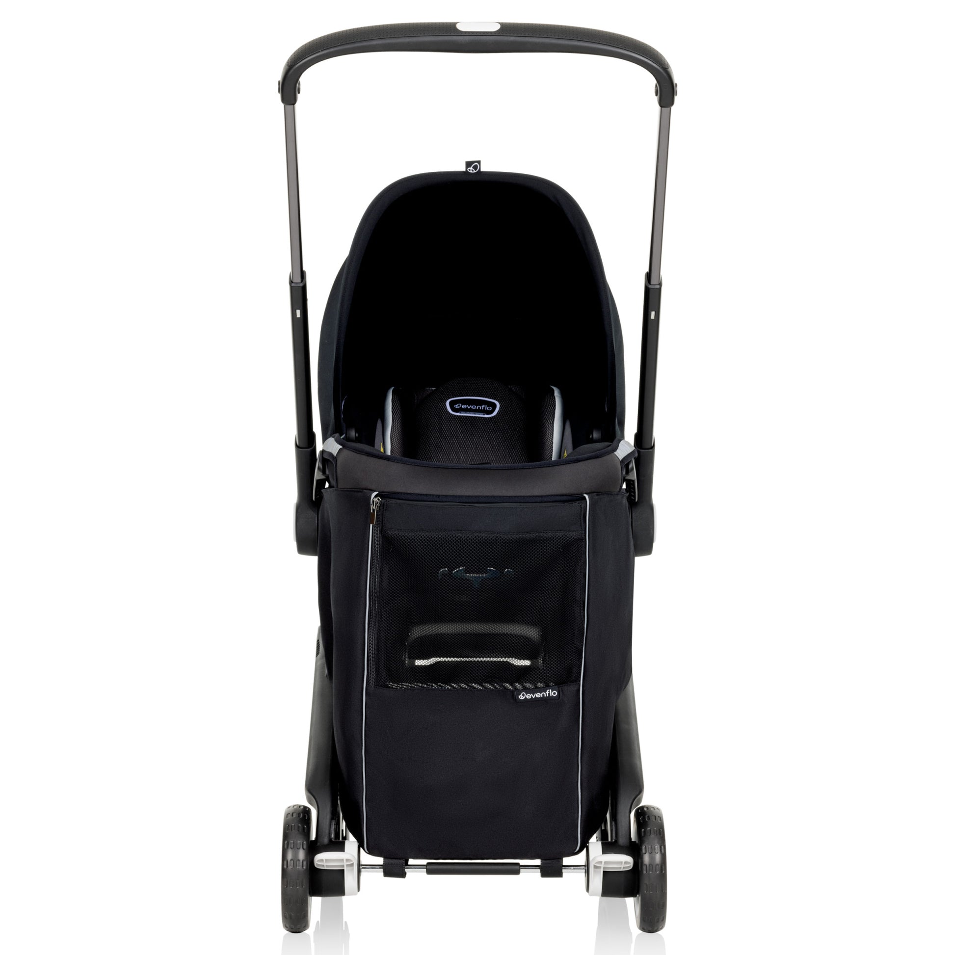 Our coordinating Carryall Storage Bag lets you Shyft into life with a newborn while getting evenmore convenience from your Evenflo® Shyft™ DualRide™ Infant Car Seat and Stroller Combo! Crafted of durable polyester canvas, this lightweight storage bag is designed to help streamline trips with your little one. Outside, a modern, minimal silhouette with reflective logo tag and trim for visibility in high traffic or low light provides easy access to essentials you might need while out and about. Inside, the roomy interior with a supported bottom holds a maximum of 7 lb. — your diaper bag, a change of clothes, baby blanket, wipes or other items. You have a choice of two ways to open the bag: one side of the storage bag features a premium chrome zipper for two-handed access while the other side features magnetic release for times when you have only one hand free. A mesh window set into the front of the storage bag allows you to see through to the inside, so you can quickly spot an item you need to grab in a hurry — without digging. Cutouts near the top of the bag integrate with your DualRide infant car seat belt path for easy attachment in seconds — these double as handholds so you can remove and carry the bag as a shopping tote. Designed to standup to daily use, the bag can be spot-cleaned so it looks fresh and ready for the next family excursion.