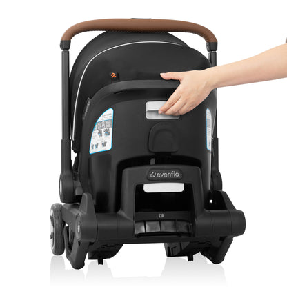 It’s a car seat & stroller & carrier & head-turner in one! The Evenflo® Shyft™ DualRide™ Infant Car Seat Stroller Combo with Carryall Storage & Extended Canopy is a single piece of baby gear that Shyfts from infant car seat to stroller in one step. Moving from car to sidewalk? Lift carrier off the base, release the wheels and roll on. Maneuvering stairs? Retract the wheels, carry up or down steps, pop the wheels back down and go. No struggling with multiple pieces of gear. No disturbing your little one. With real-time SensorSafe® alerts via Bluetooth® connection, this remarkable stroller car seat combo makes every trip easier. Designed for infants 3 lb to 30 lb, and 15.7 in. to 32 in.Features