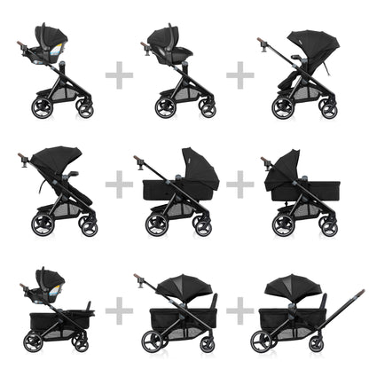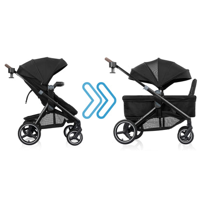 One product. Every mode. Every stage. The Evenflo® Transformer™ Stroller to Wagon Travel System, featuring the LiteMax™ NXT Infant Car Seat, seamlessly transforms from stroller to wagon with no extra parts or accessories needed. With 9 modes of use and a total capacity of 130 lb, it’s the 1st stroller to wagon travel system that grows with your family from 1 kid to 2. Designed to simplify daily life for new and growing families, it includes the LiteMax™ NXT Infant Car Seat for use from day one. From first rides to big-kid adventures, this all-in-one travel system evolves with your family.Features