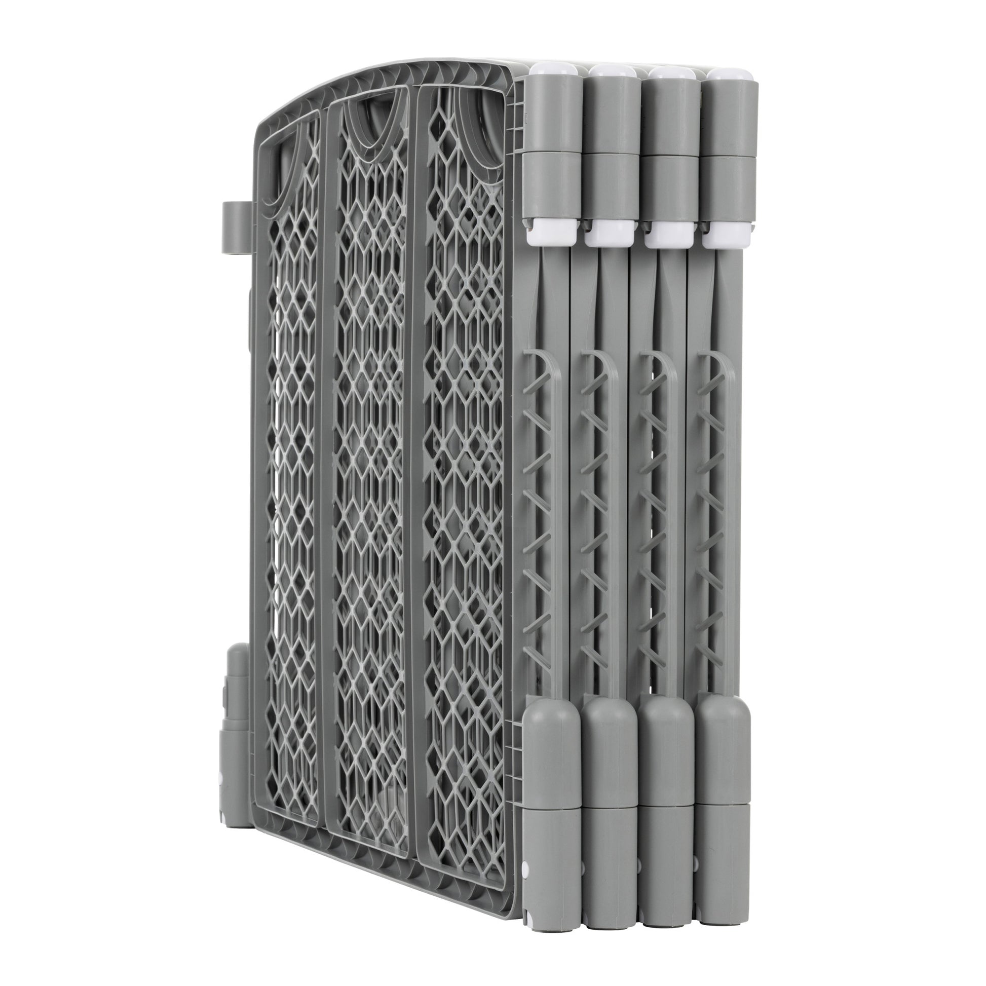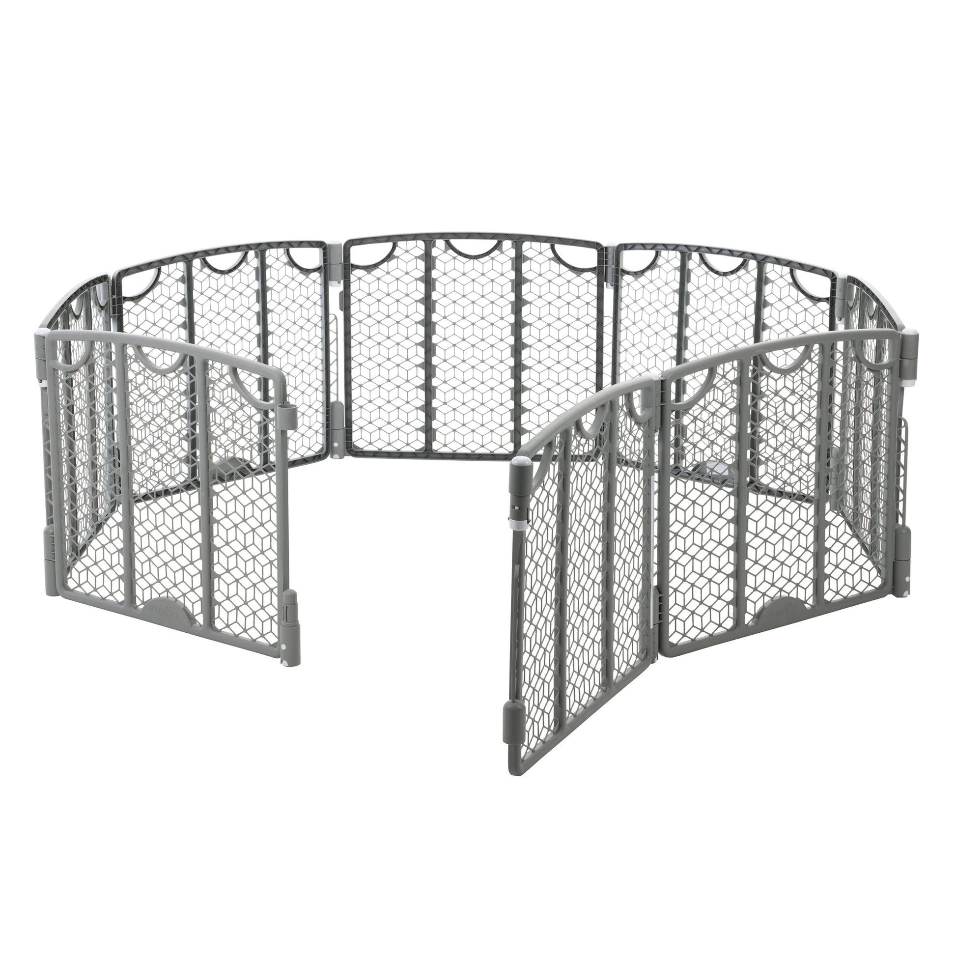 SPREAD OUT: Provides a safe, spacious space for a child of 6-24 months of age to play — measures 34.5 sq ft at 28” tall; unique hinge design allows any panel to be a door access